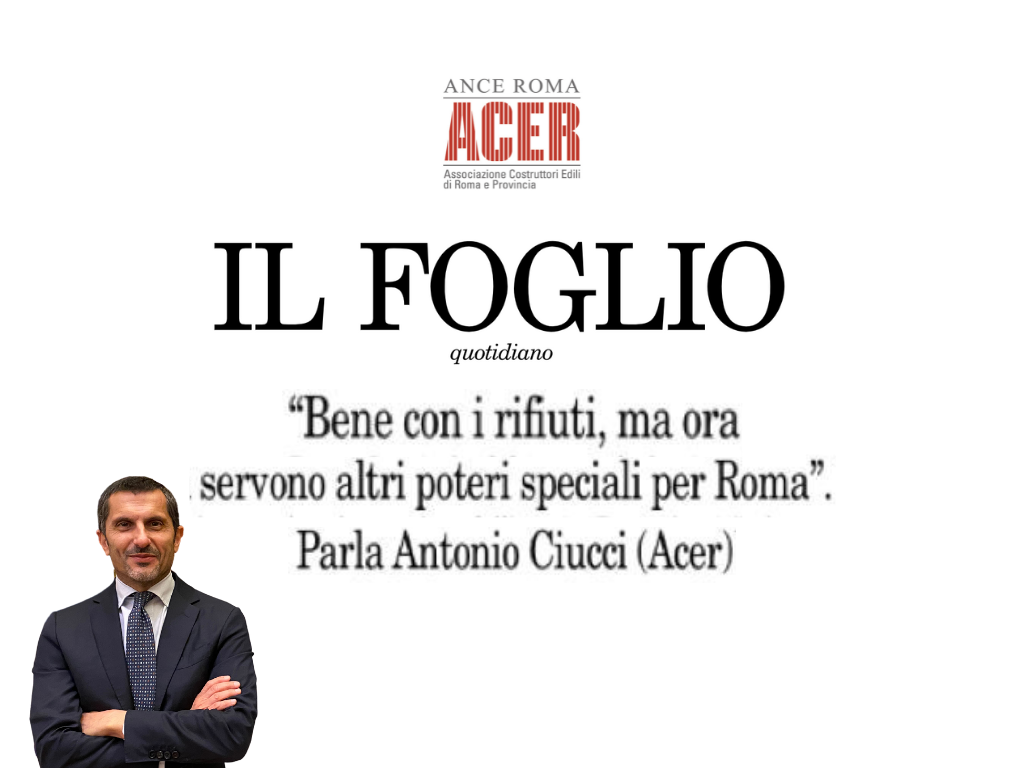 “L’attuale piano regolatore della Capitale è datato, ha bisogno di modifiche, ma oggi qualsiasi variante o modifica alle norme tecniche di attuazione, come i cambi di destinazioni d’uso, deve fare due passaggi, prima in comune, poi in Regione, questo significa tempi lunghissimi e impossibilità per la Capitale di pianificare liberamente il proprio sviluppo”. Così il Presidente di Ance Roma – ACER Antonio Ciucci intervistato dal quotidiano “Il Foglio”. Di seguito l’articolo in pdf e disponibile anche online: https://www.ilfoglio.it/roma-capoccia/2022/05/05/news/bene-con-i-rifiuti-ma-ora-servono-altri-poteri-speciali-per-roma-parla-antonio-ciucci-acer–3973495/