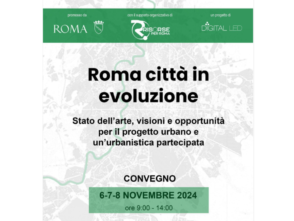 “Roma città in evoluzione” – Stato dell’arte visioni e opportunità per il progetto urbano e un’urbanistica partecipata. Da mercoledì 6 novembre a venerdì 8 novembre (Via del Politecnico, 1 – Roma | Macroarea Ingegneria -Tor Vergata), tre giorni di confronto sui temi urbanistici che riguardano Roma; un progetto di Digital Led, per un evento promosso da Roma Capitale con il supporto organizzativo di Risorse per Roma e in collaborazione con Tor Vergata. Giovedì, alle ore 11:20, parteciperà anche il Presidente Ance Lazio, Nicolò Rebecchini. Di seguito, il programma con tutti gli interventi previsti.