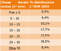 Anche la domanda per classi di età si mantiene pressoché stabile rispetto allo stesso trimestre del 2023. Infatti, continua a essere la fascia di età compresa tra i 25-44 anni quella a maggiore incidenza (61,2% del totale), grazie ai piani di rimborso dilazionati e inferiori ai 150.000 euro, a cui segue 45-54 anni che rappresenta quasi una richiesta su 4 (23,4%).