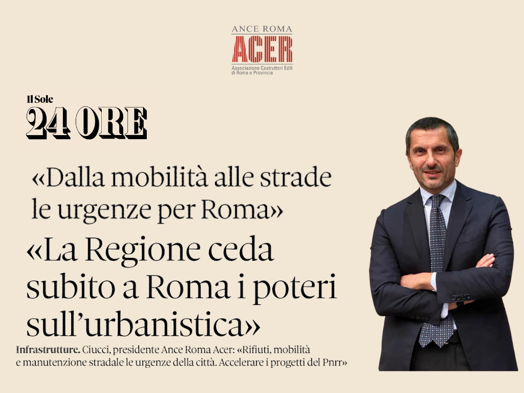 “Le urgenze per Roma sono rifiuti, mobilità e manutenzione stradale. Il 2021 è stato un anno ottimo per le costruzioni. Il 2022 temiamo possa essere meno positivo. Tuttavia i dati della Cassa Edile evidenziano una tenuta delle ore lavorate. Abbiamo un po’ di apprensione, ma non una visione completamente negativa”. A parlare è Antonio Ciucci, presidente dell’associazione dei costruttori romani, l’Ance Roma – ACER. Di seguito è possibile leggere l’intervista integrale rilasciata al quotidiano “Il Sole 24 Ore”, pubblicata nell’inserto “Centro” e disponibile anche online: https://www.ilsole24ore.com/art/la-regione-ceda-subito-roma-poteri-sull-urbanistica-AEJmp5YB