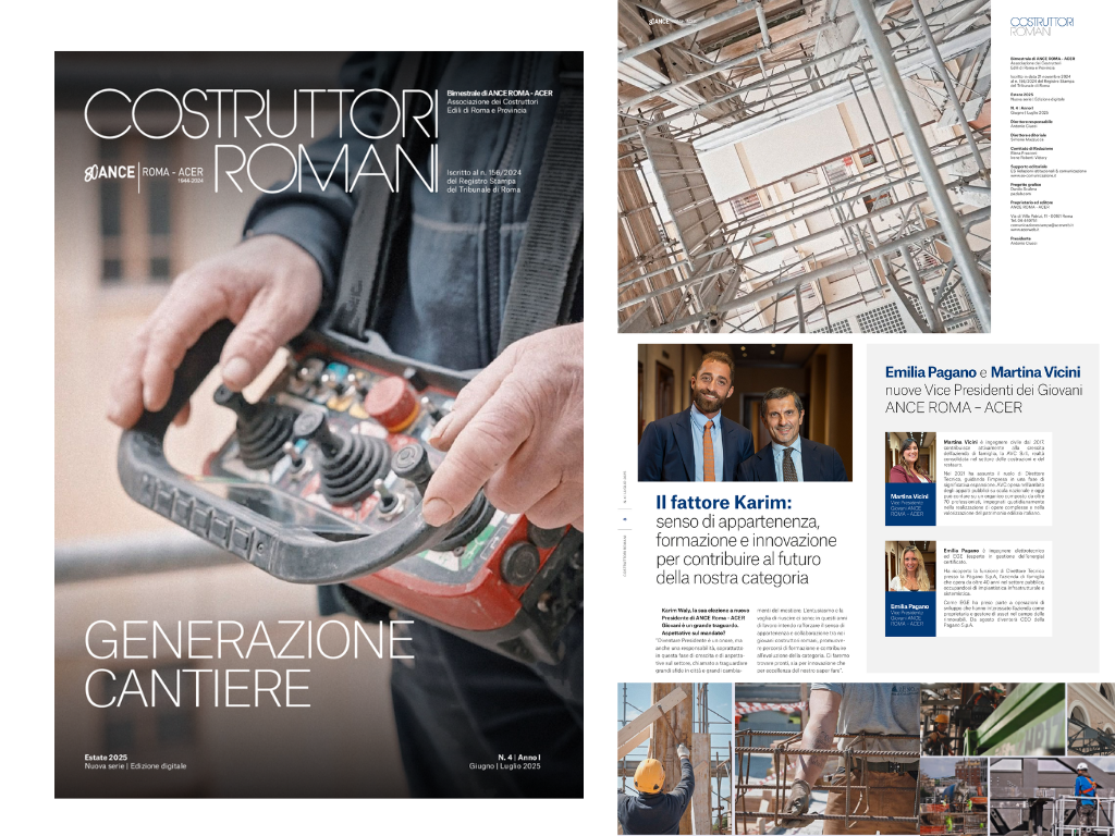 Per questa estate, il nostro bimestrale – “Costruttori Romani” – non va in vacanza e vi lasciamo un nuovo numero da sfogliare, per le prossime tre settimane. Lo abbiamo titolato “Generazione cantiere” perchè parliamo dei Giovani ANCE ROMA – ACER e, ovviamente, del cantiere – l’altro ufficio dei costruttori romani – che abbiamo deciso di raggiungere con la nostra campagna di comunicazione #inCANTIEREperROMA. C’è anche una novità a chiusura del sommario, su cui torneremo ad aggiornarvi da settembre. Trovate il file nel PDF, di seguito e su ISSUU.