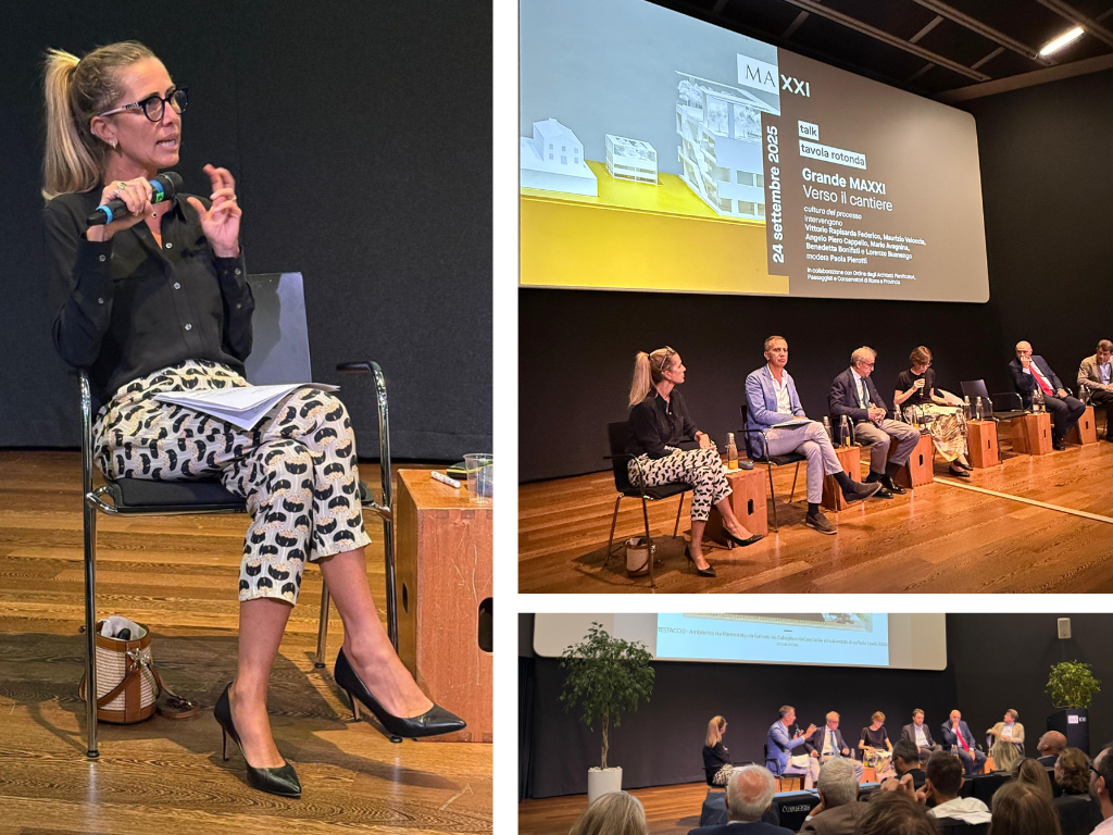 A illustrare la nuova evoluzione del Museo nazionale delle arti del XXI secolo: Maria Emanuela Bruni (presidente Fondazione MAXXI) e Francesco Stocchi (direttore artistico del MAXXI), seguiti da Margherita Guccione (direttore scientifico Grande MaXXI), Umberto Napolitano (cofondatore Lan). All’evento hanno partecipato, in una tavola rotonda anche: Vittorio Rapisarda Federico (provveditore interregionale per il Lazio l’Abruzzo e la Sardegna del Ministero delle infrastrutture e dei trasporti), Maurizio Veloccia (assessore all’Urbanistica del Comune di Roma), Angelo Piero Cappello (direttore generale Creatività Contemporanea del Ministero della Cultura), Mario Avagnina (project manager Grande MAXXI), Lorenzo Busnengo (consigliere dell’Ordine degli Architetti di Roma) e la nostra Vicepresidente ANCE ROMA – ACER, Benedetta Bonifati.