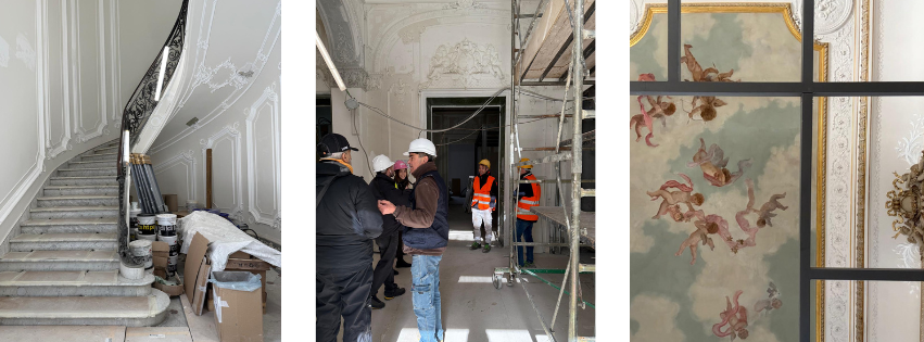 Un villino storico al centro del quartiere Nomentano, all’angolo di Via Malpighi, lungo via dei Villini. Un edificio a cui il gruppo De Sanctis Costruzioni S.p.A. ha ridato un’altra vita, dopo anni di abbandono, con un raffinato restauro conservativo. Pierangelo Tiberi, insieme ad altri tecnici e operai della De Sanctis, ci ha fatto fare un giro in una giornata di lavoro, mentre il cantiere del restauro era in fase di chiusura. Una visita con il naso all’insù, per la bellezza degli interni riportati al loro splendore.