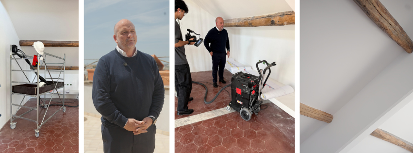 Frascati, città metropolitana di Roma Capitale, nell’area dei Castelli Romani. All’incrocio tra via Felice Ferri, via Massimo D’Azeglio e via Principe Amedeo l’impresa associata Conart è al lavoro su un immobile ERP (Edilizia Residenziale Pubblica). Grazie a un finanziamento europeo del fondo Next Generation Eu e alle risorse PNRR destinate al progetto, l’edificio verrà riqualificato e saranno realizzati interventi utili all’aumento delle unità immobiliari, di miglioramento sismico e di efficientamento energetico. Tra un piano e l’altro: il rumore della “spara calce, le voci del capo cantiere con le indicazioni che dettano il da farsi e soprattutto l’entusiasmo. Il tanto entusiasmo di chi va in cantiere con una missione e si ritrova un po’ come in famiglia.