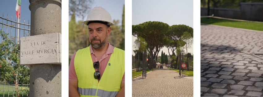 Nel nostro viaggio di riqualificazione urbana ci fermiamo ai margini del Colle Palatino, dove sorge una piccola gemma della città: lo splendido Roseto Comunale. Qui la pavimentazione è stata completamente riqualificata, rimuovendo il vecchio manto stradale per far spazio a un selciato realizzato con quadrotti – i celebri sampietrini – posati, sigillati e resinati con cura.