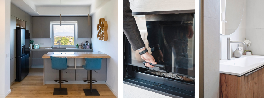 Accompagnati da Giovanni Pusceddu e Federica Fanasca entriamo così in un bellissimo appartamento a Pietralata, oggi casa di Jacopo e Francesca: un immobile degli anni ’70 completamente trasformato in un ambiente moderno, sia nella distribuzione degli spazi sia nell’impiantistica.