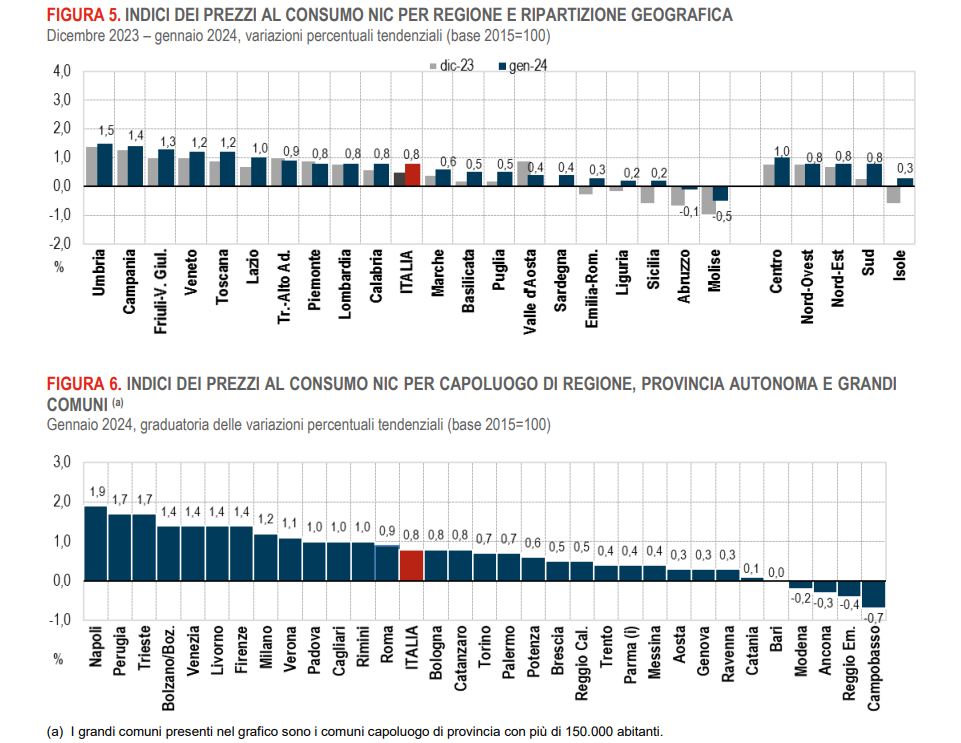 ISTAT: PREZZI AL CONSUMO – GENNAIO 2024