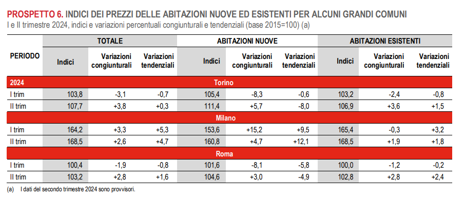 Il tasso di variazione acquisito dell’IPAB per il 2024 è pari a +2,7% (+5,6% per le abitazioni nuove e +2,0% per quelle esistenti).