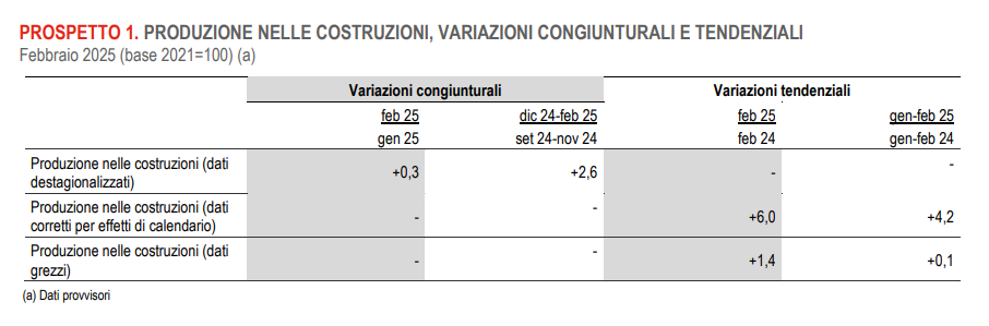 ISTAT: PRODUZIONE NELLE COSTRUZIONI – FEBBRAIO 2025