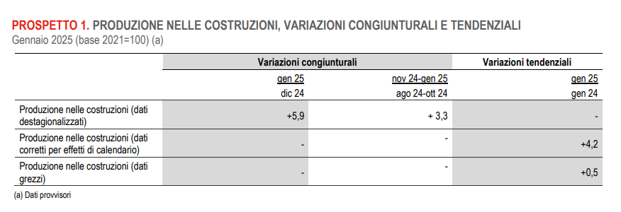 ISTAT: PRODUZIONE NELLE COSTRUZIONI – GENNAIO 2025