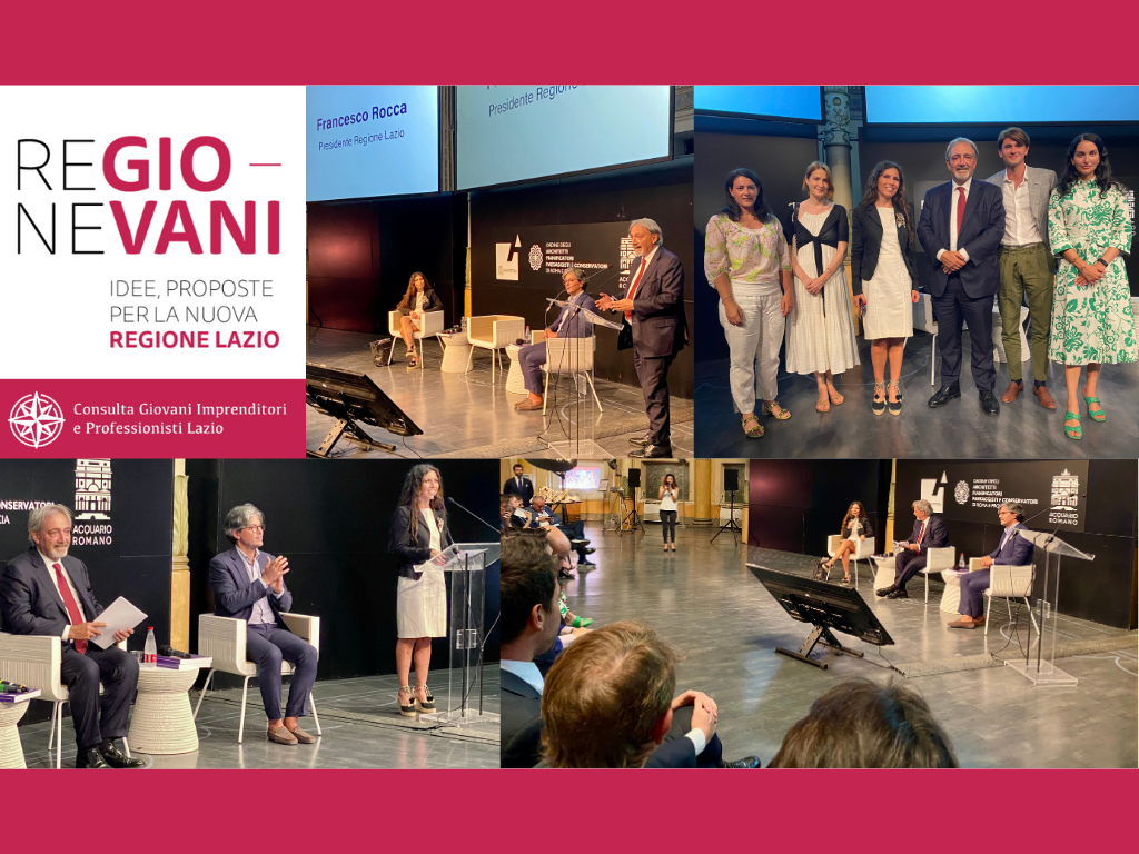 Il punto di vista dei giovani imprenditori e professionisti del Lazio e le priorità per lo sviluppo del territorio: questi i temi al centro di “Regione Giovani – Idee, proposte per la nuova Regione Lazio”, primo incontro con il Presidente Francesco Rocca promosso dalla Consulta Giovani Imprenditori e Professionisti del Lazio, in collaborazione con Gruppo Giovani Ance Roma – ACER e OAR (Ordine degli Architetti di Roma e Provincia).