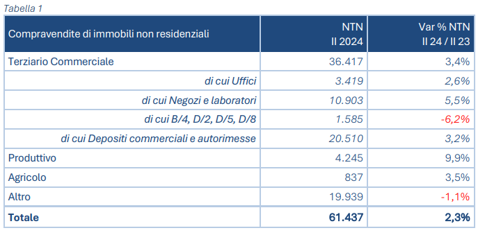 Secondo il rapporto sul mercato immobiliare residenziale dell’Agenzia delle Entrate, i segnali di ripresa mostrati dalla fine dello scorso anno sono confermati anche nel secondo trimestre 2024, che mostra un generale aumento delle compravendite di immobili non residenziali, il 2,3% in più rispetto allo stesso periodo del 2023.