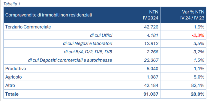 Nel quarto trimestre del 2024, secondo il rapporto dell’Osservatorio sul mercato immobiliare dell’Agenzia delle Entrate, il mercato degli immobili non residenziali registra un incremento delle compravendite del 28%, con un volume di oltre 91 mila unità scambiate.